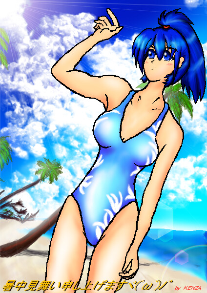 ケンザさんから頂いた暑中見舞い。 いやはや、有り難う御座います~♪ 青い空、白い雲っ!でもってバカンスモードなレオナっ いいね~、絵になりますね~ とっても涼しくてイイ感じです♪ 海のほうにはラルフ達がいたりするのかしら~ 暑~い夏に、ひんやりさはやか~♪な暑中見舞い、 どうも有り難う御座いました~♪