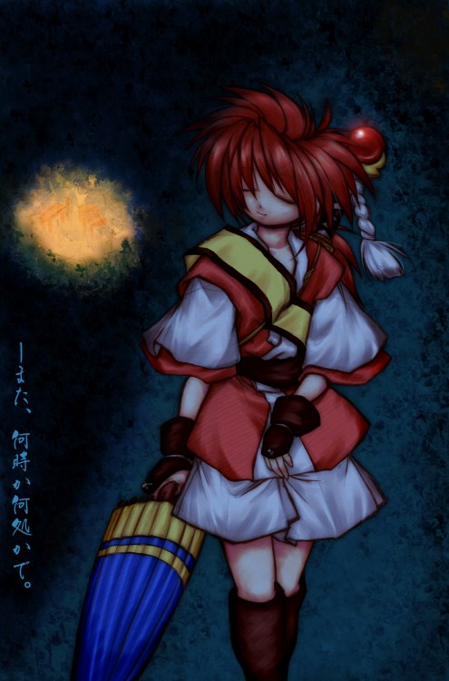 祭の後。 賑やかなお祭の後は、どことなく寂しくて、――でも暖かくて。 バランスおかしいのはきっと気が抜けた所為orz でも、思いは、確かにここに。 使用ソフト:ペインター8.1、Photoshop CS ツール:主線コンテ、色オイルパステル。下書きも加える方向で。他いろいろ。 作成日:2007年5月21日 BGM:祭り流れる(斬)、零SPスタッフロール、後の祭(剣)